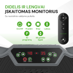 Kaasasolev kaugjuhtimispult võimaldab teil treeningu ajal seadeid muuta platvormilt lahkumata. Suurenda või vähenda kiiresti ja mugavalt kiirust, muuda programmi või aega. Komplektis on kaks takistusriba, mis võimaldavad sul teha ülakeha treeninguid – muutes vibratsiooniplatvormi seeläbi kogu keha treenijaks.